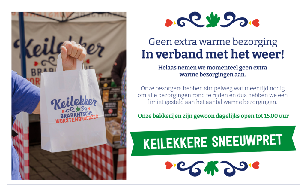 Onze bakkerij in Vught is deze zondag (1-9) Gesloten